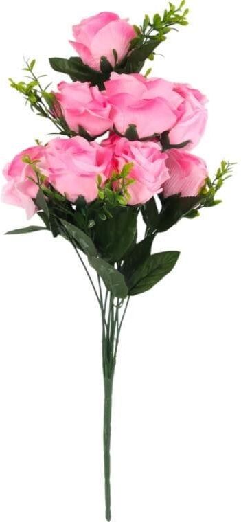 Sztuczny bukiet róż z bukszpanem o wysokości 54 cm to elegancka i ponadczasowa dekoracja, która zachwyca naturalnym wyglądem. Starannie wykonane płatki róż oraz drobne, gęste listki bukszpanu tworzą harmonijną kompozycję pełną koloru i wdzięku. Bukiet doskonale prezentuje się w wazonie jako samodzielna ozdoba, ale równie pięknie wygląda w większych aranżacjach kwiatowych. Wysokiej jakości materiały gwarantują trwałość i odporność na blaknięcie, dzięki czemu zachowuje swój urok przez wiele lat. To idealny element wystroju salonu, jadalni, biura czy recepcji, który nadaje przestrzeni świeżości i klasy.