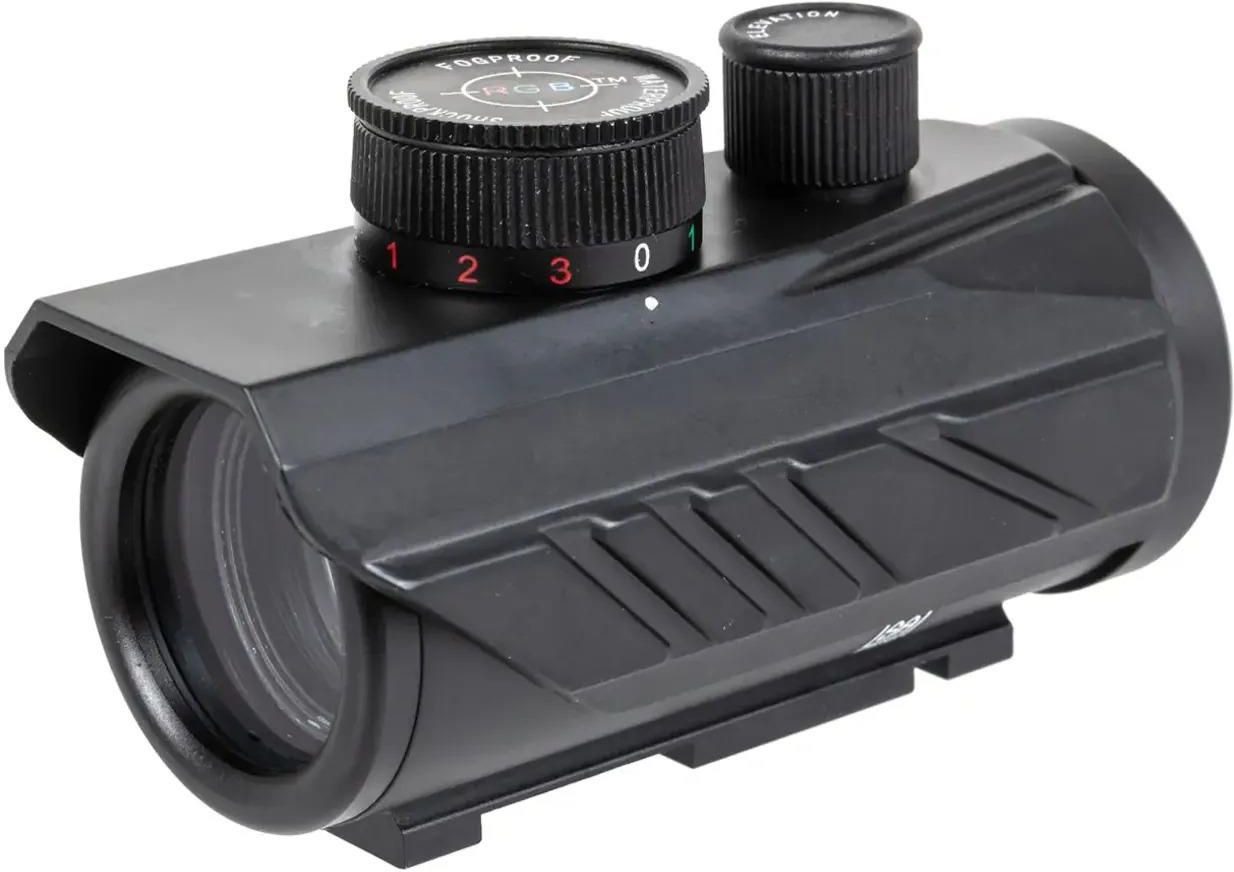Zamknięty celownik kolimatorowy wyposażony w znak celowniczy w postaci czerwonego, niebieskiego lub zielonego punktu. Model wykonano ze stopu trwałego aluminium. Zastosowany surowiec charakteryzuje się niską wagą przy zachowaniu wysokiej odporności na uszkodzenia. Kolimator ma montaż na szynę Weaver/Picatinny/RIS.