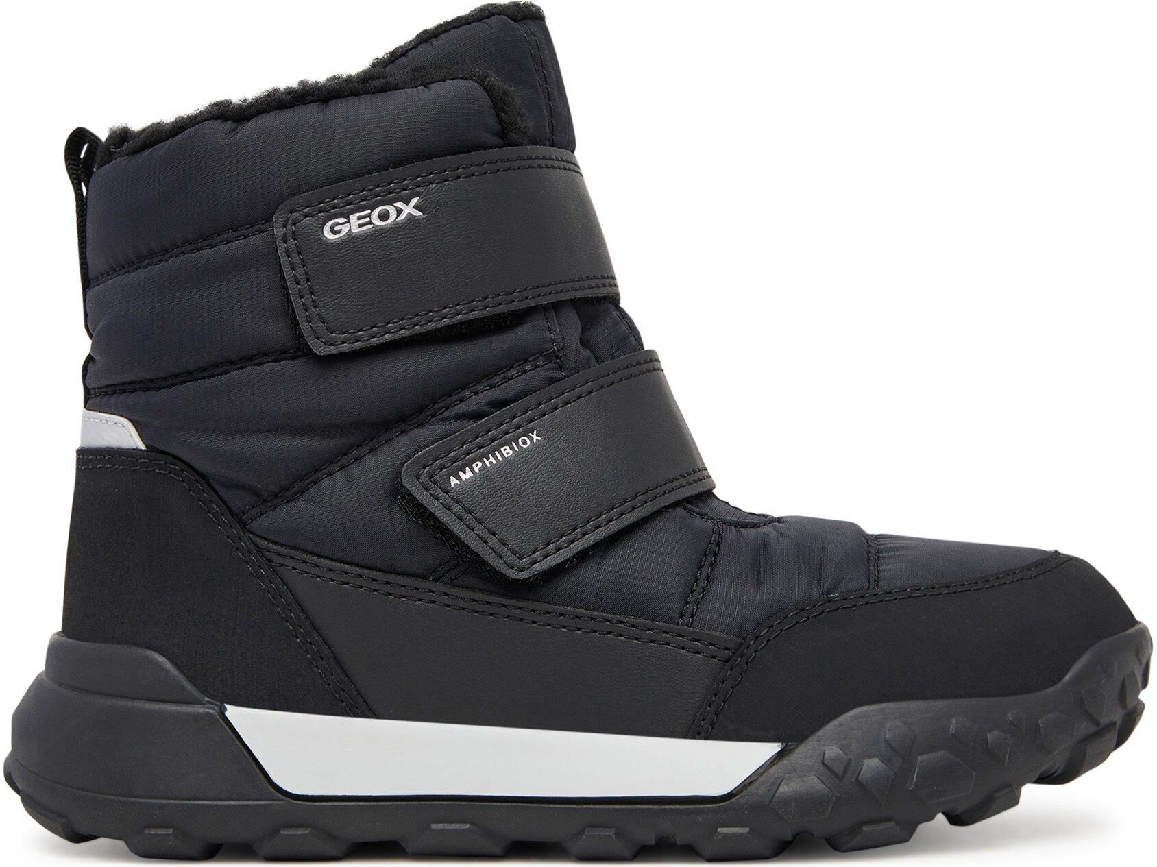 Buty Śniegowce dla Dzieci Geox J Trekkyup B ABX F Black J46MBF Czarne Symbol: GE243-a Kolor: Czarny Rozmiar: 32 (21.4 cm) Wiecej rozmiarów i kolorów znajdziesz na pozostałych aukcjach. Opis produktu Dziecięce śniegowce Geox Trekkyup to praktyczne i wygodne obuwie na zimowe dni, stworzone z myślą o aktywnych chłopcach. Cholewka wykonana ze skóry ekologicznej i materiału tekstylnego zapewnia lekkość, wytrzymałość i łatwość w pielęgnacji. Technologia Amphibiox gwarantuje wodoodporność oraz oddychalność, dzięki czemu stopy pozostają suche i komfortowe w każdych warunkach. Ocieplone wnętrze i miękka tekstylna wkładka dbają o ciepło oraz wygodę przez cały dzień. Rzepy ułatwiają szybkie zakładanie i zdejmowanie, a tylna pętelka dodatkowo wspiera tę czynność. Podwyższona cholewka stabilizuje kostkę, chroniąc stopę podczas zabaw i spacerów na nierównej nawierzchni. Wzmocniony nosek i zapiętek zwiększają trwałość oraz bezpieczeństwo podczas codziennego użytkowania. Gumowa podeszwa z bieżnikiem gwarantuje doskonałą przyczepność na śliskich powierzchniach. Galeria zdjęć