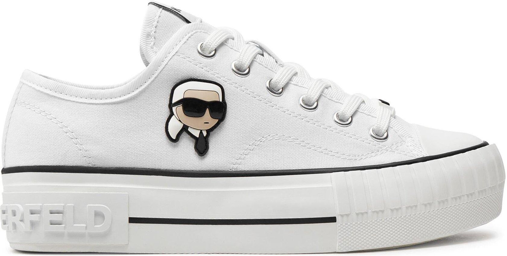 Białe damskie trampki KAMPUS MAX NFT, marki Karl Lagerfeld. Rozmiar - Długość wkładki: 36 - 23,3 cm | 37 - 24 cm | 38 - 24,6 cm | 39 - 25,3 cm | 40 - 25,9 cm