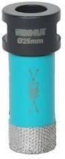 OTWORNICA DIAMENTOWA TURBO 25 mm Kod produktu: DBDB25 Producent: BIHUI Dane techniczne Rozmiar/średnica: 25 mm Wysokość krawędzi diamentu: 10 mm Maksymalna głębokość wiercenia: 35 mm Gniazdo: M14 (przykręcane bezpośrednio do wału szlifierki kątowej) Rodzaj wiercenia: bez udaru, na mokro/na sucho Sprzęt do zastosowania: szlifierka kątowa mala z regulacją Zastosowanie: gres porcelanowy, płytki ceramiczne, wszystkie rodzaje kamienia naturalnego i sztucznego Robocza prędkość obrotowa szlifierki kątowej: 10000-14000 obr/min Opis Dzięki regularnemu ułożeniu diamentów w nasypie, otwornica jest wytrzymalsza i bardziej precyzyjna. Otwornica do precyzyjnego wiercenia otworów w twardych materiałach. Gwint M14 pasujący na każdą szlifierkę (zalecane używanie szlifierki z regulacją obrotów). Rozpocznij wiercenie pod kątem 45°, a następnie zmień go na 90°.