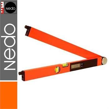 Kątomierz elektroniczny NEDO LaserWinkeltronic 605mm z modułem laserowym W oparciu niezawodną elektronikę został opracowany kątomierz Nedo LaserWinkeltronik , dzięki któremu można mierzyć i przenosić kąty. Duży wyświetlacz w przejrzysty sposób wyświetla wyniki pomiaru. Funkcja HOLD umożliwia zachowanie wartości pomiarowej na wyświetlaczu. Libella pozioma i pionowa umożliwia idealnie utrzymać kątomierz w pionie lub poziomie. Kątomierz można wyzerować w dowolnym położeniu ramion co pozwala dokonywać pomiarów pośrednich od już pomierzonych kątów. Dwie baterie zapewniają 40 godzin ciągłej pracy.Kątomierz wbudowany ma moduł laserowy który umożliwia "przedłużenie" ramion do 20m . Idealnie nadaje się do budowy schodów lub branż gdzie wymagane jest tyczenie kątów na dłuższych odległościach. Parametry kątomierza: Długość ramienia: 605mm Dokładność: 0,1° Rozdzielczość: 0,1° Zakres pomiaru: 0° - 360° Ciężar: 1.40 kg Wbudowane libelle pozioma i pionowa Klasa lasera: II klasa, 650nm Zasięg: 20m Dwa moduły laserowe