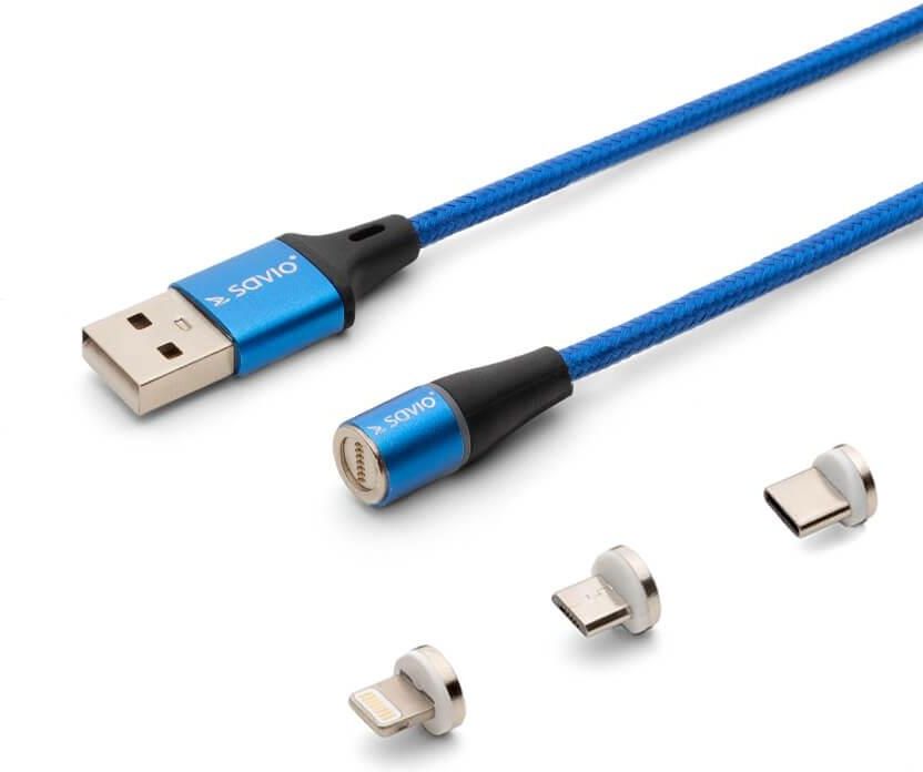 Savio Kabel magnetyczny USB - USB Typ C Micro i Lightning Niebieski 2m (CL-157) Wyśmierzyce