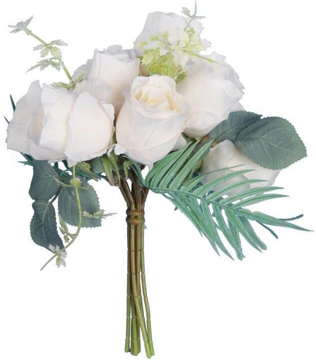 Sztuczny kwiat BUKIET 10 RÓŻ to elegancka dekoracja, która dzięki zastosowaniu wysokiej jakości materiałów wiernie imituje naturalne kwiaty, nadając każdemu wnętrzu wyjątkowego charakteru. Realistyczne odwzorowanie kolorów i tekstur sprawia, że róże wyglądają jak żywe, co czyni ten bukiet idealnym wyborem zarówno do samodzielnych aranżacji, jak i bardziej złożonych kompozycji florystycznych. Doskonale sprawdzi się jako dekoracja do domu, biura, restauracji czy innej przestrzeni, gdzie żywe rośliny mogą być trudne w utrzymaniu. Sztuczny bukiet róż nie wymaga pielęgnacji, a mimo to przez długi czas zachowuje swój piękny wygląd, nadając elegancji każdemu pomieszczeniu. Jego wielkość, wynosząca 30 cm, sprawia, że świetnie pasuje do wazonów oraz może stanowić atrakcyjny dodatek do większych aranżacji dekoracyjnych. Bukiet róż to nie tylko praktyczna ozdoba, ale także stylowy akcent, który wprowadzi do Twojego otoczenia subtelną elegancję i romantyczny nastrój, podkreślając piękno i harmonię każdej przestrzeni.