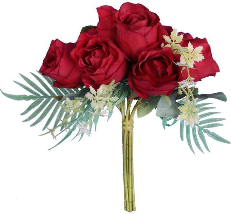Sztuczny kwiat BUKIET 10 RÓŻ to elegancka dekoracja, która dzięki zastosowaniu wysokiej jakości materiałów wiernie imituje naturalne kwiaty, nadając każdemu wnętrzu wyjątkowego charakteru. Realistyczne odwzorowanie kolorów i tekstur sprawia, że róże wyglądają jak żywe, co czyni ten bukiet idealnym wyborem zarówno do samodzielnych aranżacji, jak i bardziej złożonych kompozycji florystycznych. Doskonale sprawdzi się jako dekoracja do domu, biura, restauracji czy innej przestrzeni, gdzie żywe rośliny mogą być trudne w utrzymaniu. Sztuczny bukiet róż nie wymaga pielęgnacji, a mimo to przez długi czas zachowuje swój piękny wygląd, nadając elegancji każdemu pomieszczeniu. Jego wielkość, wynosząca 30 cm, sprawia, że świetnie pasuje do wazonów oraz może stanowić atrakcyjny dodatek do większych aranżacji dekoracyjnych. Bukiet róż to nie tylko praktyczna ozdoba, ale także stylowy akcent, który wprowadzi do Twojego otoczenia subtelną elegancję i romantyczny nastrój, podkreślając piękno i harmonię każdej przestrzeni.