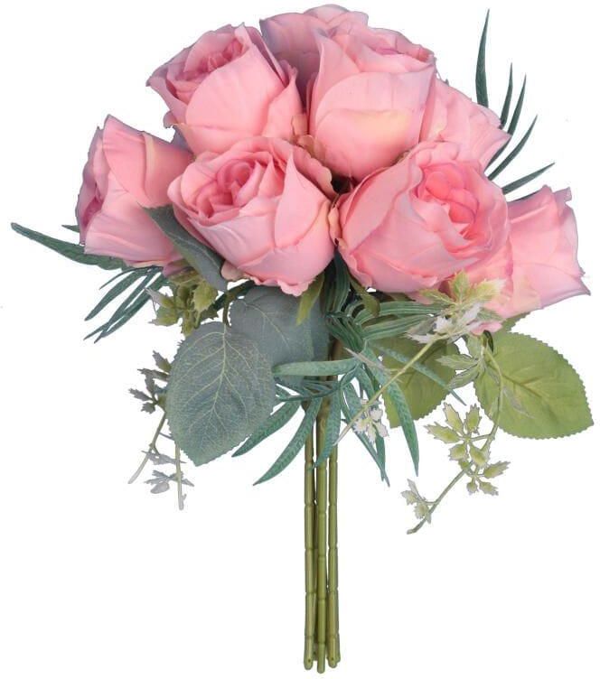 Sztuczny kwiat BUKIET 10 RÓŻ to elegancka dekoracja, która dzięki zastosowaniu wysokiej jakości materiałów wiernie imituje naturalne kwiaty, nadając każdemu wnętrzu wyjątkowego charakteru. Realistyczne odwzorowanie kolorów i tekstur sprawia, że róże wyglądają jak żywe, co czyni ten bukiet idealnym wyborem zarówno do samodzielnych aranżacji, jak i bardziej złożonych kompozycji florystycznych. Doskonale sprawdzi się jako dekoracja do domu, biura, restauracji czy innej przestrzeni, gdzie żywe rośliny mogą być trudne w utrzymaniu. Sztuczny bukiet róż nie wymaga pielęgnacji, a mimo to przez długi czas zachowuje swój piękny wygląd, nadając elegancji każdemu pomieszczeniu. Jego wielkość, wynosząca 30 cm, sprawia, że świetnie pasuje do wazonów oraz może stanowić atrakcyjny dodatek do większych aranżacji dekoracyjnych. Bukiet róż to nie tylko praktyczna ozdoba, ale także stylowy akcent, który wprowadzi do Twojego otoczenia subtelną elegancję i romantyczny nastrój, podkreślając piękno i harmonię każdej przestrzeni.