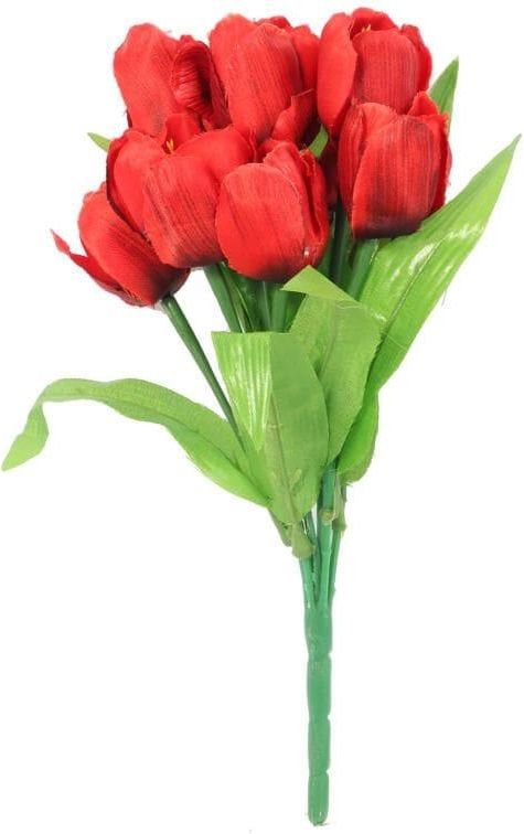Sztuczny bukiet 9 tulipanów o wysokości 32 cm to urocza dekoracja, która wprowadza do wnętrza wiosenny, świeży akcent przez cały rok. Wykonany z wysokiej jakości materiałów, kwiaty zachowują realistyczny wygląd płatków i liści, do złudzenia przypominając żywe tulipany. Bukiet doskonale prezentuje się jako samodzielna ozdoba w wazonie, a także jako element większych kompozycji kwiatowych, nadając przestrzeni elegancji i subtelności. Dzięki trwałości materiałów nie wymaga pielęgnacji ani podlewania, pozostając estetyczny przez długi czas. To praktyczny i efektowny dodatek do salonu, sypialni czy biura, który ożywia każde wnętrze i wprowadza radosny, kolorowy akcent.