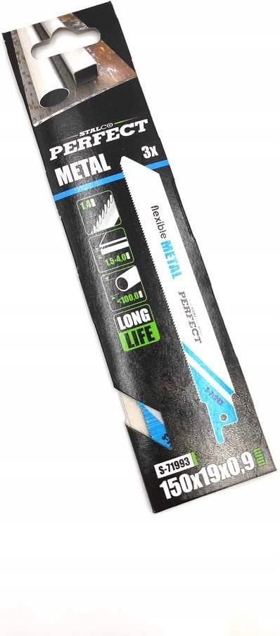 Stalco Brzeszczot do piły szabl. do metalu 1,4X150mm PERFECT Brzeszczot Do Pił Szablastych Do Metalu 1,4X150Mm STALCO PERFECT S-71993 agresywny kształt zębów zmniejsza wibracje i zwiększa prędkość cięcia HSS - do cięcia metalu, aluminium, metali kolorowych HCS - do cięcia drewna, płyt pilśniowych, …