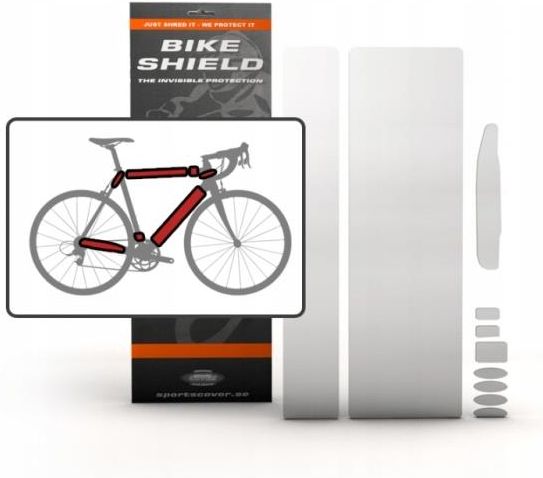 BikeShield naklejki ochronne Fullpack Regular transparentny matowy Komplet naklejek ochronnych BikeShield Wytrzymałe Łatwe w montażu, i demontażu Nie blakną, ani nie żółkną Zestaw wystarcza do zabezpieczenia jednego roweru W skład zestawu wchodzą łatki w następujących rozmiarach: 1szt. 100x500mm 1szt. 50x500mm 1szt. 38x250mm 1szt. 32x60mm 4szt. 20x30mm 4szt. 15x50mm (owalne) Kod producenta: 10010-101-M