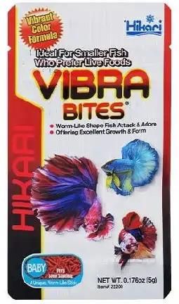 Vibra Bites Baby to nowoczesne granulki stworzone specjalnie dla ryb drapieżnych i wszystkożernych, naśladują zapach, smak i wygląd czerwonych larw ochotki. Ten innowacyjny pokarm stanowi zaawansowaną alternatywę dla żywego pożywienia, precyzyjnie imitując larwy ochotki bez ryzyka związanego z chorobami, infekcjami pasożytów i wprowadzeniem szkodliwych bakterii do środowiska. Składniki odżywcze zostały starannie dobrane w odpowiednich proporcjach, co przyczynia się do efektownego poprawienia kolorów ciała ryb.Produkty Hikari produkowane są w Japonii, ale doceniane są na całym świecie przez akwarystów, marka segmentu premium.