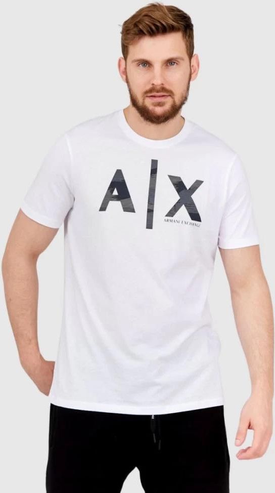 ARMANI EXCHANGE Biały t-shirt męski z szarym logo, Rozmiar L Wyszków