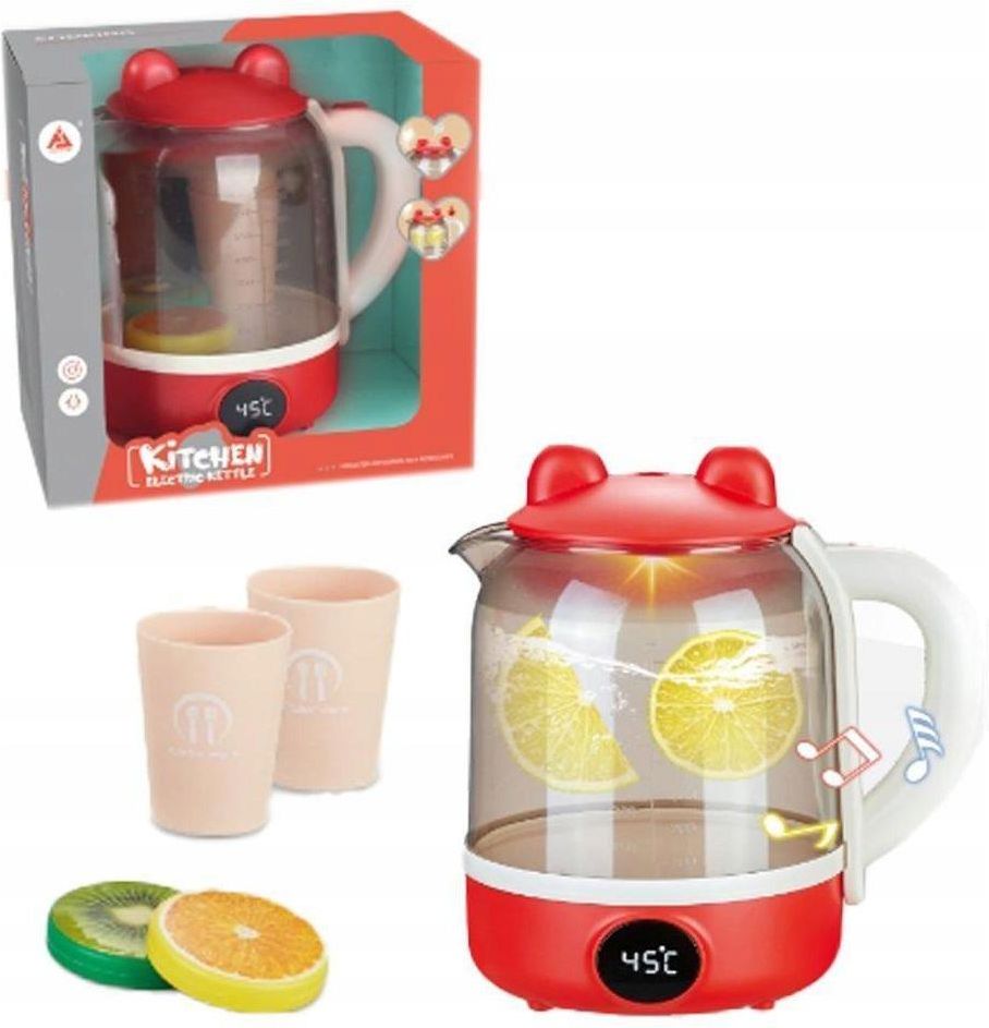 Zabawka czajnik ASKATO 125572 CO WYRÓŻNIA NASZ PRODUKT **Realistyczne efekty specjalne** - Poruszająca się woda, wielokolorowe podświetlenie i autentyczne dźwięki gotowania tworzą niezapomniane wrażenia z zabawy. **Bogaty zestaw akcesoriów** - Dwa kubeczki oraz ozdobne plasterki owoców umożliwiają pełną zabawę w domek i przyjęcia. **Duża pojemność wodna** - Możliwość nalania do 700 ml prawdziwej wody dla jeszcze bardziej realistycznych doświadczeń. **Uniwersalność i długotrwała zabawa** - Odpowiedni zarówno dla chłopców jak i dziewczynek, zapewniający rozrywkę przez wiele godzin. ROZWIJA WYOBRAŹNIĘ I KREATYWNOŚĆ! Ten wyjątkowy czajnik ASKATO 125572 to nie zwykła zabawka, lecz prawdziwe centrum rozrywki dla małych kucharzy! Dzięki realistycznemu procesowi gotowania wody, który aktywuje się jednym przyciskiem, dzieci mogą poczuć się jak prawdziwi szefowie kuchni. Woda w środku porusza się naturalnie, a wielokolorowe podświetlenie wnętrza tworzy magiczną atmosferę zabawy. STYMULUJE ROZWÓJ ZMYSŁÓW I KONCENTRACJĘ! Zabawka angażuje wszystkie zmysły dziecka - wzrok poprzez kolorowe światła, słuch dzięki autentycznym dźwiękom gotowania, a dotyk przez możliwość nalewania prawdziwej wody. Pojemność do 700 ml wody zapewnia długotrwałą zabawę i jeszcze bardziej realistyczne doświadczenia, które pobudzają ciekawość i chęć eksplorowania. BEZPIECZEŃSTWO I TRWAŁOŚĆ NA NAJWYŻSZYM POZIOMIE! Wykonany z wysokiej jakości tworzywa sztucznego, czajnik został zaprojektowany z myślą o bezpieczeństwie najmłodszych. Solidna konstrukcja gwarantuje długoletnią zabawę, a starannie dobrane materiały zapewniają pełne bezpieczeństwo użytkowania. Produkt spełnia wszystkie normy bezpieczeństwa dla zabawek dziecięcych. WSPIERA ROZWÓJ SPOŁECZNY I KOMUNIKACJĘ! Zestaw zawiera dwa kubeczki oraz ozdobne plasterki cytryny i limonki, co zachęca do zabawy w grupie i nauki dzielenia się. Dziecko może zapraszać przyjaciół na herbatkę, co rozwija umiejętności społeczne, komunikację oraz naukę dobrych manier. To idealna zabawka do ról społecznych i budowania relacji międzyludzkich. SPECYFIKACJA Stan: Nowy Kod producenta: 125572 Wiek dziecka: 3 lata + Marka: Askato Bohater / Bajka: brak Materiał: plastik Baterie: 3x AA Kolor: czerwony Wysokość produktu: 17 cm Szerokość produktu: 16 cm Certyfikaty, opinie, atesty: CE Waga produktu z opakowaniem jednostkowym: 0.38 kg EAN (GTIN): 6901440125572 Minimalny wiek dziecka: 3 Płeć: chłopcy, dziewczynki