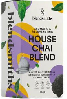 Aromatyczna i rewitalizująca.Przedstawiamy tradycyjny indyjski napój łączący w sobie subtelną słodycz i aromatyczne przyprawy. Aby go przygotować, wystarczy zmieszać proszek z ulubionym rodzajem mleka.DLA POSZUKIWACZY SMAKÓW„House Chai Blend” od „Blendsmiths” to subtelnie słodka herbata o wyrazistym smaku. Zawiera mnóstwo przepysznych składników naturalnych, co przekłada się na istne bogactwo smaków.Ponadto jest naszpikowana antyoksydantami o silnym działaniu, przez co wzmacnia układ odpornościowy, poprawia trawienie i łagodzi stany zapalne w organizmie.Przygotowanie:*Porcja na standardowy kubek o pojemności ok. 240 ml- Przepyszny napój na ciepło: wystarczy dodać 2 łyżeczki (11 g) „Blendsmiths House Chai Blend” do mleka, a następnie podgrzać za pomocą spieniacza do mleka, kuchenki mikrofalowej lub rondla.- Schłodzony napój idealny na ciepłe dni: wystarczy wsypać „Blendsmiths House Chai Blend” do blendera i wlać mleko, zmiksować do uzyskania upragnionej konsystencji, a następnie podawać z lodem.- 250 g = 23 porcje Składniki: gałka muszkatołowa, cynamon cejloński, goździki, anyż, cukier, kardamon, imbir, czarny pieprz.Alergeny: wyprodukowano w fabryce przetwarzającej orzechy.PRODUKT BEZGLUTENOWY | PRODUKT BEZMLECZNY | PRODUKT PRZYJAZNY DLA WEGANWarunki przechowywania: po otwarciu szczelnie zamknąć i przechowywać w chłodnym, suchym miejscu.