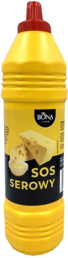 Sos serowy 900g BONA Składniki: olej rzepakowy, woda, żółtko jaja w proszku, cukier, ser w proszku (2%), sól, ocet spirytusowy, musztarda (ocet spirytusowy, woda, mączka z gorczycy, cukier, przyprawy), regulator kwasowości: E338, aromaty (zawierają mleko), laktoza z mleka, ekstrakty przypraw, …