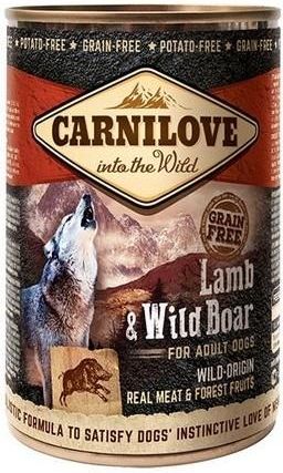 Formuły karm Carnilove są tak zbilansowane, że te pokarmy bardzo przypominają naturalną dietę psa. Zawierają mięso, mięśnie i kości z odpowiednim dodatkiem warzyw lub ziół.  Receptura karm zawiera odpowiednio zbilansowane, tylko wysokiej jakości składniki, dzięki czemu podając pupilowi tę karmę masz pewność że dostarczasz mu wszystkie składniki odżywcze, potrzebne dla utrzymania optymalnej kondycji i zdrowego układu odpornościowego. Carnilove Adult Lamb & Venison.  Mokra karma dla psa jagnięcina i dzik. BEZ ZBÓŻ, BEZ ZIEMNIAKÓW.  PEŁNOPORCJOWA, MOKRA KARMA DLA DOROSŁYCH PSÓW WSZYSTKICH RAS. Karma na bazie jagnięciny i dziczyzny, będących doskonałym źródłem wysokiej jakości, łatwo przyswajalnego białka.  Mięso jagnięce jest cenione za zawartość selenu, żelaza, cynku, witamin z grupy B i tłuszczów nienasyconych.  Mięso z dzika jest łatwo przyswajalne i ma niska zawartość tłuszczu, dzięki czemu jest idealne dla utrzymania optymalnej wagi psa.  Należy zadbać, aby pies miał stały dostęp do świeżej wody pitnej. SKŁAD jagnięcina (35%), dzik (32%), borówka (2%), żurawina (2%), malina (2%), minerały (1%), olej z łososia (0,1%). SKŁADNIKI ANALITYCZNE białko surowe 10,8%, zawartość tłuszczu 6,9%, popiół surowy 2,5%, włókno surowe 0,4%, wilgotność 75%. DODATKI DIETETYCZNE W 1KG witamina D3 (E671) 200 IU, cynk (E6) 15 mg, mangan (E5) 3 mg, jod (E2) 0,75 mg. RECEPTURĘ KARMY CARNILOVE OPRACOWANO Z UWZGLĘDNIENIEM NATURALNEGO POCHODZENIA PSÓW. Szeroki wybór starannie wyselekcjonowanych mięs pochodzenia dzikiego od zwierząt, takich jak renifer, kaczka, bażant, indyk, jagnię, dzik i łosoś, odpowiada składowi naturalnego pokarmu i zapewnia spożycie ważnych aminokwasów. Owoce leśne, warzywa i zioła są naturalnym źródłem ważnych witamin, przeciwutleniaczy i innych niezbędnych składników odżywczych. SPRAWDŹ INNE KARMY CARNILOVE