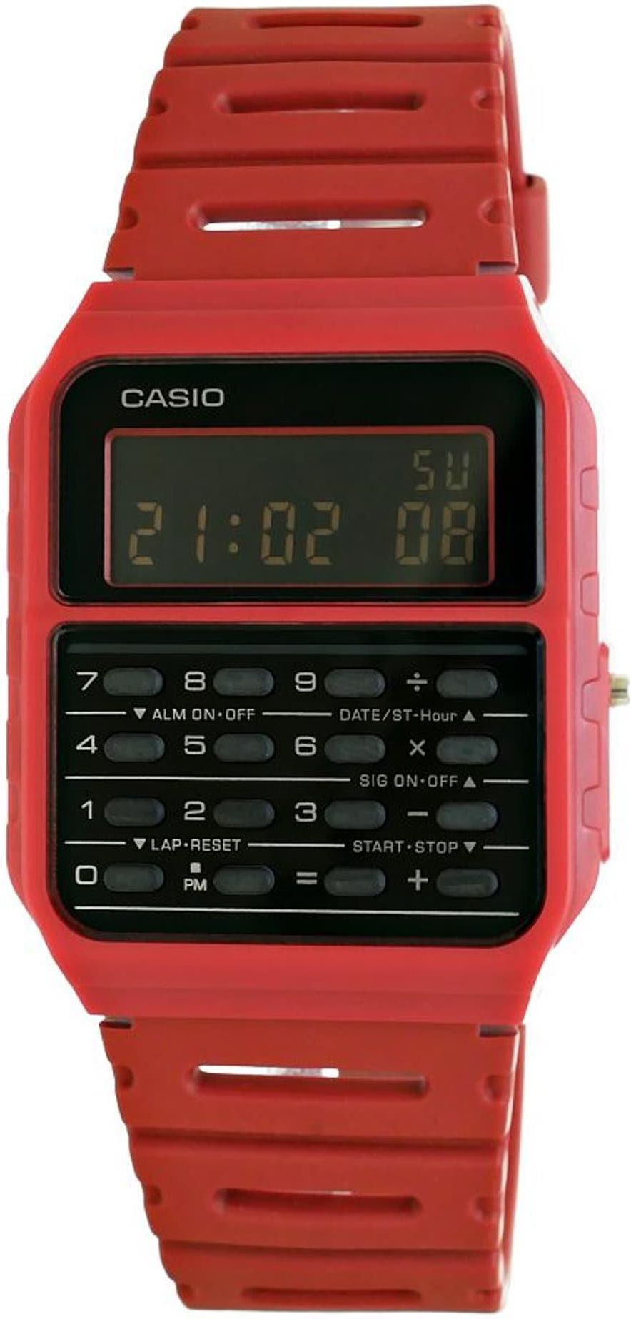 Casio to popularna marka japońskich zegarków, wyróżniająca się przede wszystkim funkcjonalnością, sportowym stylem oraz obecnością wielu innowacyjnych rozwiązań. Zegarki Casio to bez wątpienia jeden z największych i najbardziej znanych koncernów produkujących zegarki. Japońska firma cały czas pracuje nad ulepszaniem swoich produktów, wyposażając je w najnowocześniejsze technologie i materiały cechujące się najwyższą jakością i wytrzymałością. Zegarek męski Casio CA-53WF-4BEF został wyposażony w mechanizm kwarcowy, zasilany baterią. Prostokątną kopertę umieszczono na pasku z tworzywa sztucznego, którego maksymalny obwód wynosi 20cm. Model CA-53W posiada szkiełko hesalitowe. Do dodatkowych funkcji czasomierza możemy zaliczyć m.in: kalkulator, stoper odmierzający czas do 24 godzin, alarm, oraz kalendarz automatyczny. Prezentowany zegarek męski jest odporny jedynie na drobne zachlapania, więc nie wolno zanurzać go w wodzie. Seria CA to kolekcja zegarków wyposażonych w ciekłokrystaliczne wyświetlacze i kalkulator. Wygodne i wielofunkcyjne zegarki w połączeniu z kalkulatorem stanowią wyjątkowo praktyczny dodatek.