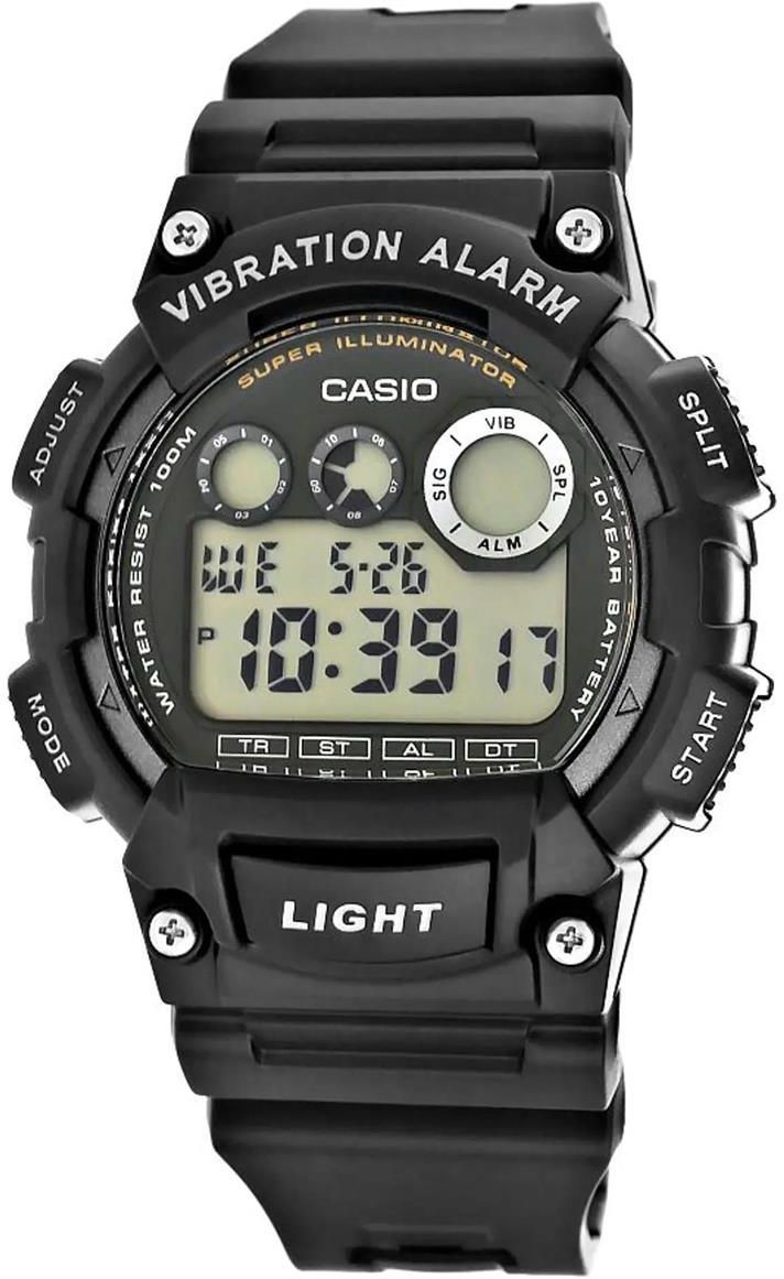 ✅ZEGAREK MĘSKI CASIO W-735H 1AV (zd081a) - Super Illuminator + BOX ✅ ✅ ✅ WYMIARY: koperta: 51,4 x 47,1 x 16,1 mm szerokość paska: 20/26mm obwód zegarka regulowany od 16 - 23 cm Kolorystyka: Tarcza w kolorze czarnym, koperta w kolorze czarnym, pasek w kolorze czarnym Koperta i pasek wykonane z wysokiej jakości tworzywa sztucznego FUNKCJE: Podświetlenie tarczy diodą LED - Super Illuminator Czas drugiej strefy Stoper (dokładność 1/100 s), czas pomiaru do 24 godzin Timer Alarm z funkcją wibracji Wyłączane dźwięki przycisków Automatyczny kalendarz - wyświetla dzień, miesiąc oraz dzień tygodnia Tryb wyświetlania czasu 12/24h Akrylowe szkło Wodoszczelność WR 100M (10 bar ISO 22810) - można zanurzać! Zakręcany dekiel ✅9590 ✅ ✅ Kolor paska/bransolety: Czarny Kształt tarczy: Okrągły Mechanizm: Kwarcowy Pasek/bransoleta: Tworzywo Rodzaj tarczy: Elektroniczna Klasa wodoszczelności: WR100 Szkło: Akrylowe Funkcje: Budzik, Czas drugiej strefy / Czas światowy, Datownik, Iluminator, Minutnik / Timer, Stoper, Wodoszczelność 100M Gotowy do wystawienia: Tak Płeć: Męskie Długość towaru w centymetrach: 25 Szerokość towaru w centymetrach: 8 Wysokość towaru w centymetrach: 5 Waga gabarytowa w gramach: 166.67 Kolor koperty: Czarny Konfigurator usługi grawerowania: true Kod producenta: 4971850906575 ✅ZEGAREK MĘSKI CASIO W-735H 1AV (zd081a) - Super Illuminator + BOX ✅