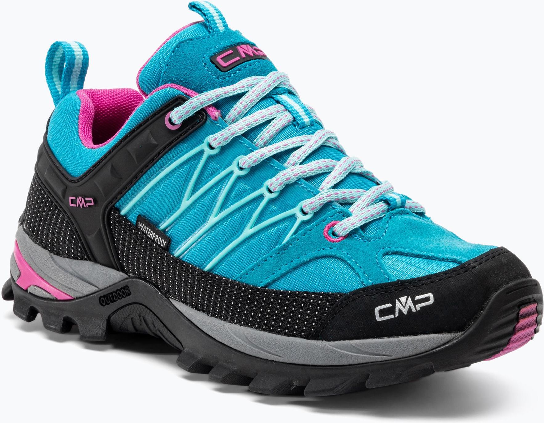 Buty turystyczne damskie CMP Rigel Low Wmn WP powstały z myślą o hikingach w dni z możliwymi opadami. Dobrą ochronę przed wodą zapewni Ci membrana ClimaProtect® oraz wykończenie DWR. Zamszowa cholewka została wzmocniona w okolicach palców.O wysoki komfort podczas wędrówki zadba wkładka Ortholite® o antybakteryjnym charakterze. Pętelki na zapiętku i języku ułatwiają zakładanie obuwia.Buty damskie CMP Rigel Low WP to model z cholewką wykonaną z wysokiej jakości materiałów. Bazą do stworzenia buta jest wytrzymała i elastyczna skóra zamszowa o grubości 1,4 mm. Wzmocniona konstrukcja palców minimalizuje ryzyko odniesienia kontuzji i uszkodzenia cholewki. Na uwagę zasługuje użycie autorskiej membrany ClimaProtect®, która zapewnia podwyższoną wodoodporność i wysoki stopień oddychalności.Buty turystyczne niskie damskie CMP Rigel Low WP to także świetna trakcja uzyskana za pomocą agresywnej podeszwy zewnętrznej wykorzystującej mieszankę gum CMP FullOn Grip. Możesz więc liczyć na odpowiednią przyczepność, zarówno na suchych, jak i mokrych nawierzchniach, przy zachowaniu niskiego poziomu ścieralności. Za odpowiednie wsparcie stopy odpowiada antybakteryjna i anatomicznie wyprofilowana wkładka Ortholite®. Śródpodeszwa to klasyczna i trwała pianka EVA, jej struktura została wzmocniona za pomocą wkładki TPU, aby zapewniać maksymalną stabilność stawianych kroków.Buty CMP Rigel Low Wmn WP - najważniejsze cechy:Model wykonany z wysokiej jakości materiałów i przy użyciu nowoczesnych technologii;Cholewka ze skóry zamszowej 1,4 mm;Membrana ClimaProtect® zapewnia podwyższoną wodoodporność i wysoką oddychalność;Wzmocniona konstrukcja palców;Wewnętrzna wkładka to uznane rozwiązanie Ortholite®;Wkładka zapewnia wsparcie łuku stopy i antybakteryjne właściwości;Amortyzująca podeszwa środkowa z pianki EVA;Wkładka z TPU zwiększa stabilność stawianych kroków;Za odpowiednią trakcję na każdym rodzaju podłoża odpowiada CMP FullOn Grip.