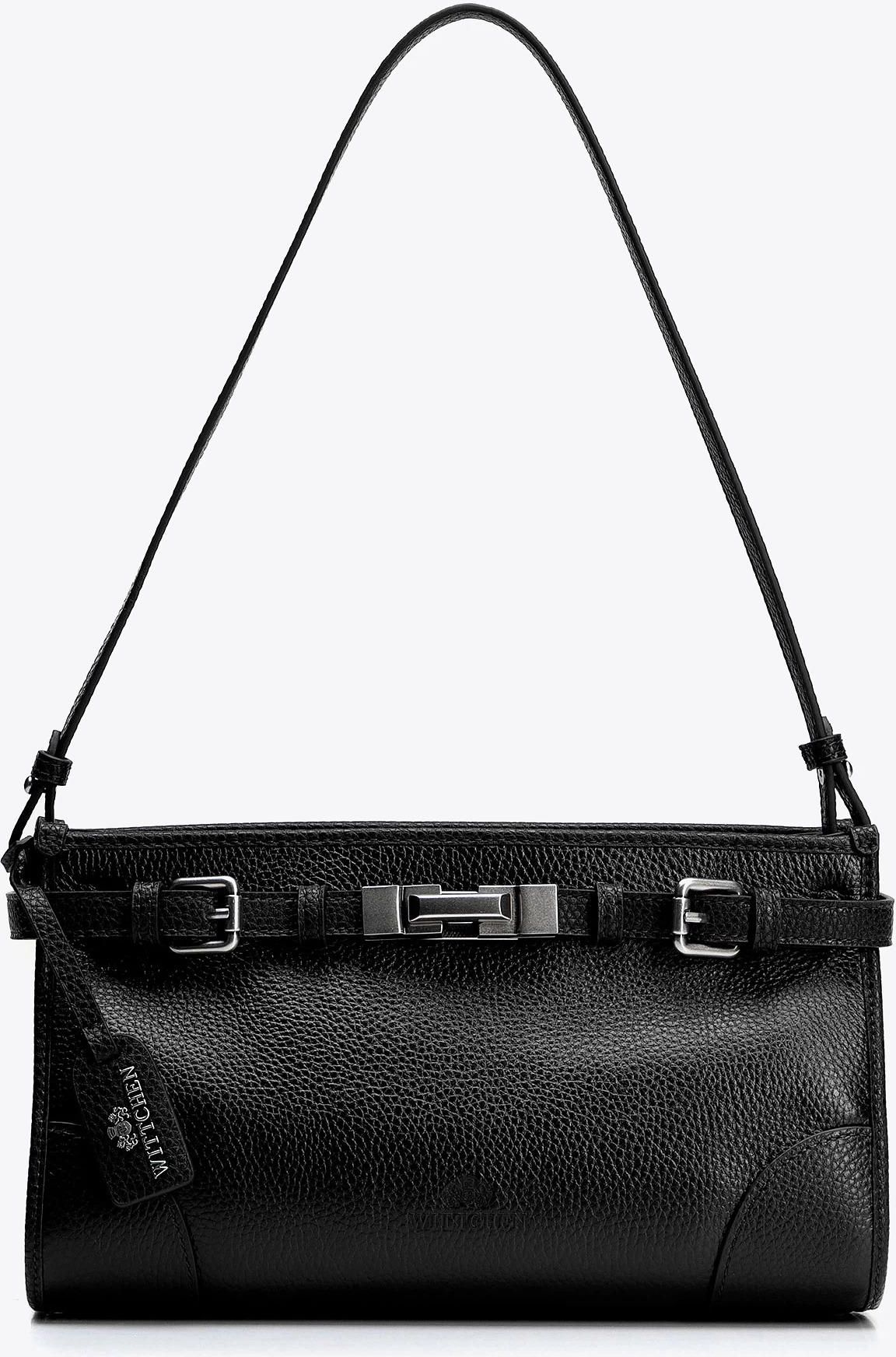 Damska torebka na ramię ze skóry naturalnej z dekoracyjnym paskiem czarne Wyszków
