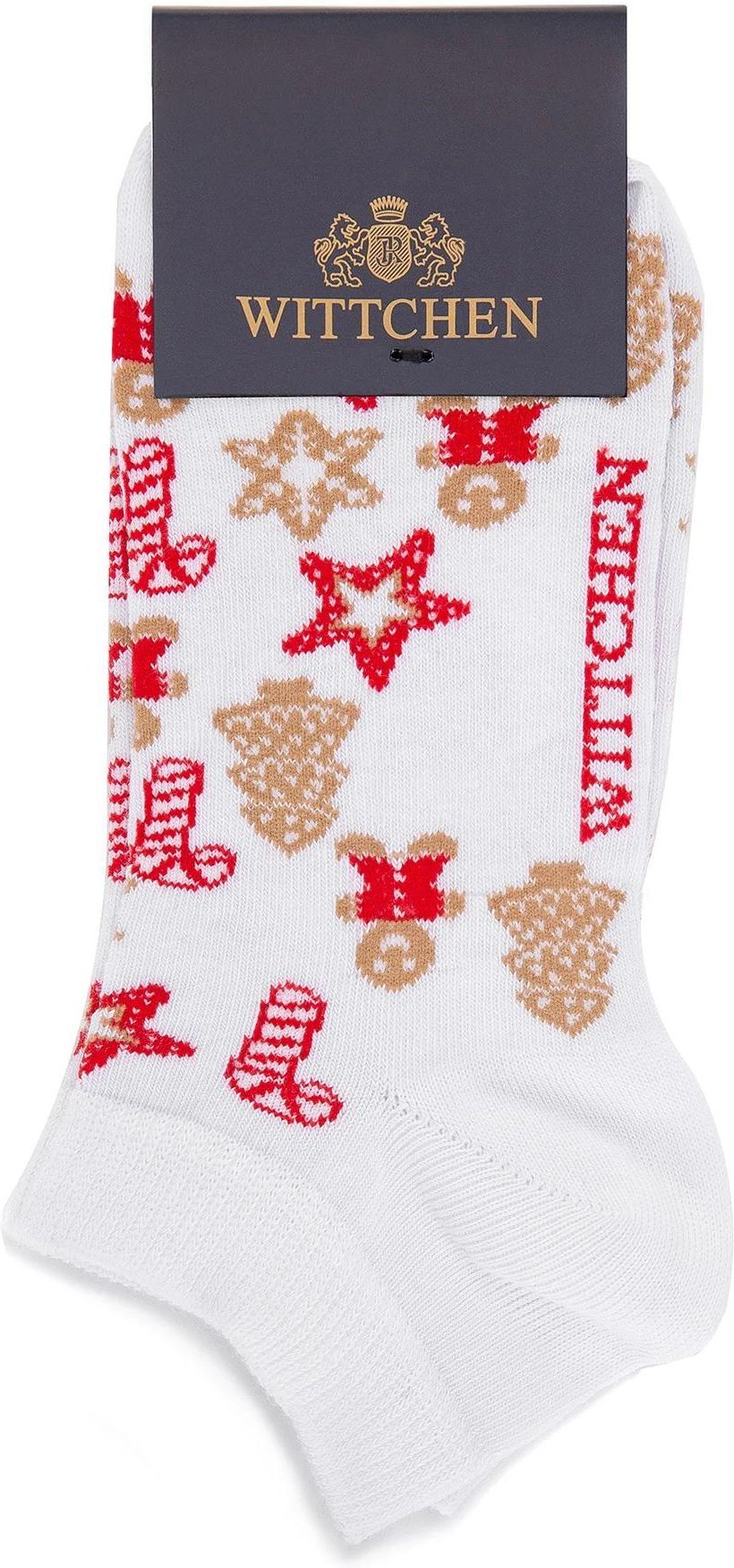 Damskie skarpetki wzorzyste. Te skarpetki to idealny dodatek na chłodniejsze miesiące. Wzór w ozdoby choinkowe i lukrowane pierniki ożywi Twój codzienny strój. Ten model został wykonany z wysokiej jakości bawełny z dodatkiem włókien poprawiających elastyczność. Będzie świetnie pasował do zimowych i świątecznych stylizacji. Damskie skarpetki w ozdoby choinkowe to świetny pomysł na prezent dla osób lubiących świąteczne gadżety.Nasza rada: noś je do ulubionych botków zimą i dodaj im koloru. 75% bawełna, 23% poliamid, 2% elastan; sięgają przed kostkę; pranie w pralce do 40 st. C.
