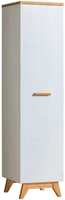 Szafa SVEN SV2 O kolekcji Kolekcja SVEN została zaprojektowana w połączeniu sosny andersen z odcieniem naturalnego dębu. Uniwersalna, jasna kolorystyka sprawia, że meble idealnie wkomponują się w aranżację wnętrz urządzonych w stylu skandynawskim. Nóżki oraz uchwyty zostały wykonane z naturalnego dębu, co stanowi wyjątkową całość wraz z blatami wybarwionymi w tym samym odcieniu. W kolekcji SVEN znajdziemy funkcjonalne bryły, które ułatwią segregację i przechowywanie rzeczy a jednocześnie nadadzą wnętrzu przytulnego charakteru. Cechy: korpusy oraz fronty wykonane z z płyty wiórowej laminowanej 16 mm, blaty wykonane z płyty 25 mm, uchwyty i nóżki: drewno dębowe, szuflady: z pełnym wysuwem. Wymiary Szerokość: 45 cm Wysokość: 185 cm Głębokość: 52 cm Dostępna kolorystyka Sosna andersen + Dąb nash