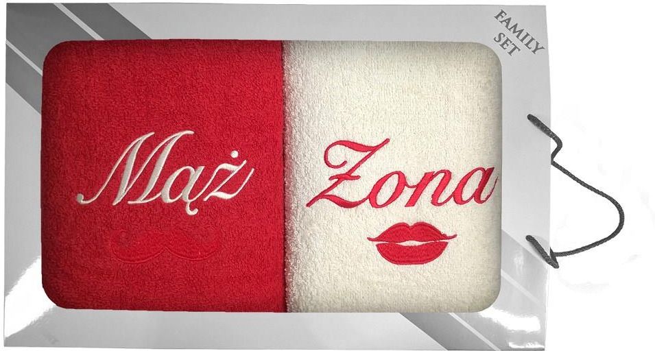 Komplet ręczników w pudełku 2 szt 70x140 Mąż Żona Usta Wąsy czerwony 23 kremowy to komplet ręczników z haftem stworzony z potrzeby poszukiwania coraz to nowych innowacyjnych rozwiązań, oraz kreowania pomysłów na prezent dla najbliższych. Niesamowicie miękkie i doskonale chłonne, będą niebanalnym …