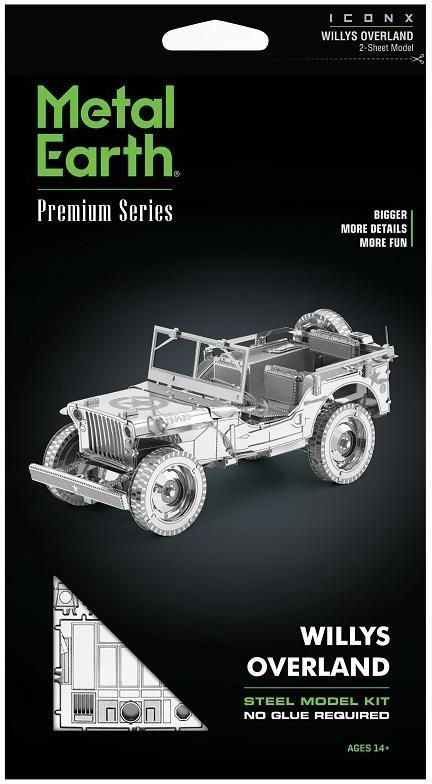 Ekscytujące wyzwanie, ekscytujące doświadczenie podczas składania i olśniewający wynik - takie są modele METAL EARTH! Ten model z serii premium ICONX w ekskluzywnym opakowaniu prezentowym zachwyci Cię jeszcze większą ilością szczegółów! Budowanie puzzli 3D METAL EARTH ICONX wymaga cierpliwości i wprawnych rąk. Efekt pracy jednak w pełni rekompensuje włożony wysiłek! Miniaturowe repliki są wyjątkowo efektowną i przyciągającą wzrok ozdobą nie tylko w domu, ale także w biurze czy w szkole. Prostokątne kawałki stali (21 x 11 cm) z częściami światowych zabytków, słynnych pojazdów, instrumentów muzycznych lub zwierząt wyrosną pod twoimi rękami na szczegółowe, fascynujące modele. Autentyczny wygląd puzzli 3D METAL EARTH ICONX uzyskano dzięki szczegółowemu grawerowaniu laserowemu. Opakowanie zawiera 2 stalowe plastry, pęsetę i instrukcję montażu. Narzędzia nie są dołączone. SPOSÓB UŻYCIA: Usuń poszczególne części z metalowych plastrów, w razie potrzeby użyj małych noży (nie dołączone). Części są łączone ze sobą za pomocą zamków utworzonych przez uchwyt (dziób) i otwór. Wygnij dziób za pomocą małych cienkich szczypiec (brak w zestawie) i stopniowo połącz wszystkie zamki, aż powstanie bardzo realistyczne arcydzieło! Zalecany wiek: od 14 lat. Jeep Willys MB był amerykańskim lekkim pojazdem użytkowym zbudowanym podczas II wojny światowej. Jego nazwa Jeep (czeski: džíp) stała się synonimem samochodu terenowego na całym świecie. Ten legendarny samochód był prawdopodobnie najsłynniejszym pojazdem II wojny światowej. Więcej w Wikipedii Fascinations ICX139 - Metal Earth ICONX 502898 - Willys Overland, laserowo wycinany zestaw konstrukcyjny 3D, 2 metalowe płytki, wiek 14+