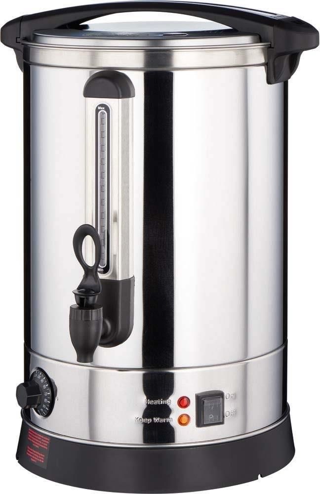 Warnik dwuściankowy 10 l marki Gredil został stworzony z myślą o restauracjach, barach, stołówkach, hotelach, salach weselnych i innych lokalach gastronomicznych. Świetnie sprawdza się do zaparzania rozmaitych napoi np. kawy, herbaty, capuccina, a nawet do podgrzewania piwa i wina. Poprzez swoją wielofunkcyjność jest niezbędnym elementem wyposażenia gastronomicznego. Warnik marki Gredil posiada zakres regulacji termostatu w przedziale od 30°C do 110°C. Wskaźnik poziomu wody w zbiorniku pozwala na obserwację ilości wody w urządzeniu. Dodatkowo warnik został wyposażony w termostat bezpieczeństwa. Nowoczesny kranik o specjalnej konstrukcji zapobiega kapaniu napoju. Kontrolka zasilania warnika sygnalizuje grzanie i podtrzymanie temperatury warnika. Podwójne ścianki zapewniają nawet do 30% niższe zużycie energii. Warnik wykonany jest ze stali nierdzewnej przez co jest trwały na uszkodzenie. Uwaga! Należy używać wody o twardości do 6°dH w skali niemieckiej , gdyż twardsza woda powoduje osadzanie kamienia na grzałkach co może spowodować uszkodzenie i utratę gwarancji. Parametry techniczne: Wysokość - H 500 mm Średnica 230 mm Napięcie - U 230 V Pojemność - V 10 l Moc elektryczna 1.5 kW