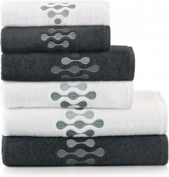 6-częściowy komplet ręczników wykonanych ze szlachetnej bawełny egipskiej, zdobionych luksusowym haftem. Ręczniki charakteryzują się niezwykłą chłonnością i miękkością. To produkt niezawodny – głębokie, trwałe kolory i nowoczesne wzornictwo to starannie dobrana kompozycja, zgodna z najnowszymi trendami tekstylnymi. W zestawie znajdują się ręczniki w rozmiarach 30x50, 50x90 oraz 70x130. Kolor biały i czarny idealnie do siebie pasują i skomponują się z wystrojem Twojej łazienki.