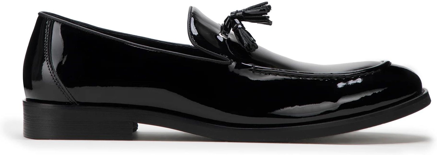 Męskie buty z lakierowanej skóry. W tych oryginalnych butach każdego dnia przyciągniesz spojrzenia. Ponadczasowy fason z obszytym noskiem zdobią dwa małe chwosty. Wykonane zostały z wysokiej jakości skóry lakierowanej, więc to dodatek na wiele sezonów. Dzięki miękkiej skórzanej wkładce komfortowo przechodzisz w nich przez wiele godzin. Mają lekką podeszwę na niskim obcasie, który delikatnie wysmukli sylwetkę. Męskie mokasyny z lakierowanej skóry z chwostem to świetny wybór dla każdego mężczyzny, który lubi bawić się modą.Nasza rada: te buty dodadzą charakteru do każdego Twojego stroju. 100% skóra lakierowana; skórzana wkładka z miękką wyściółką; podeszwa z tworzywa sztucznego; wsuwane; nosek migdał; ozdobne chwosty. skóra naturalna skóra naturalna / material włókienniczy materiał syntetyczny