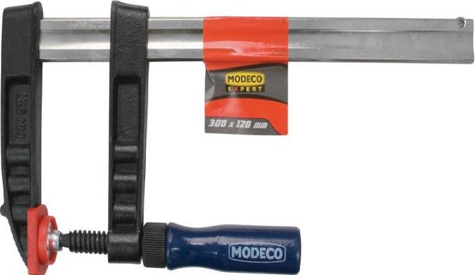 Ścisk stolarski Modeco przeznaczony jest do prac stolarskich oraz do majsterkowania. Narzędzie wyposażono w gwintowaną śrubę dociskową regulującą rozmiar ścisku oraz w specjalną ramę, której kształt zapewnia sztywność konstrukcji. Ścisk posiada wygodną ergonomiczną rączkę i spełnia wymogi normy DIN 1041. Dostępne także inne wersje ścisków: 1. długość: 200 mm; szerokość: 50 mm 2. długość: 300 mm; szerokość: 80 mm 3. długość: 300 mm; szerokość: 120 mm 4. długość: 500 mm; szerokość: 120 mm 5. długość: 800 mm; szerokość: 120 mm 6. długość: 1000 mm; szerokość: 120 mm 7. długość: 1500 mm; szerokość: 120 mm