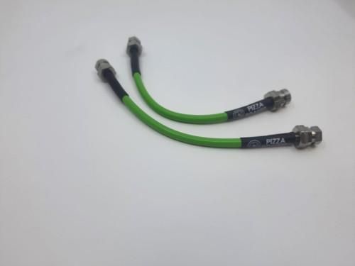 Przewody w stalowym oplocie. Kolor Zielony. Długość całkowita przewodu z końcówkami: 24,5 cm. Z obu stron końcówki "żeńskie" VAG. Gwint 10x1. Stożek uniwersalny. Produkt jest nowy - nieodebrane zamówienie przez klienta. Cena dotyczy kompletu, dwóch przewodów. Przewody mogą posiadać defekty wizualne, nie wpływające na bezpieczeństwo użytkowania.