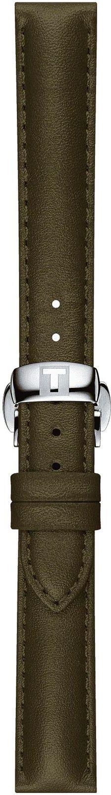 Pasek Tissot Leather 15 mm T852.046.066 wykonano ze skóry bydlęcej w kolorze zielonym. Posiada zapię