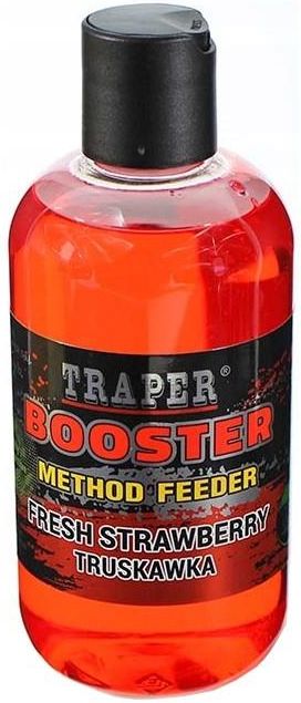 Idealnie dobrana konsystencja płynu pozwala na głębokie wnikanie (nasączanie) produktów. Substancja posiada właściwości równomiernego, stopniowego uwalniania zapachu. Ma to ogromne znaczenie wabiące. Kulki proteinowe, pellety oraz zanęty nasączone Boosterem działają szybciej i dłużej. Ryby reagują zainteresowaniem, żerują pobudzone i długo utrzymują się w łowisku. Nie rozpuszczają worków PVA. Podstawowe parametry: smak: Truskawka zawartość: 300 g Firma Traper powstała w 1993 roku. Jedną z podstaw jej stworzenia i funkcjonowania jest pasja. Jej właściciele i większość załogi są zapalonymi wędkarzami. Doświadczenia zdobywane podczas licznych wypraw wędkarskich, przekładają się na jakość produktów firmy. Traper wykazuje się wrażliwością na potrzeby innych. Jest sponsorem wielu zawodów wędkarskich dla dzieci. Wspomaga także działalność na rzecz bezdomnych zwierząt.