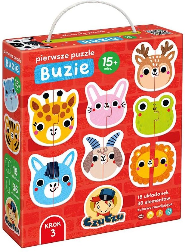 CzuCzu Pierwsze puzzle Buzie dla dzieci 15 mies+ 18 układanek Bawcie się w łączenie połówek! Wesołe zwierzaki zapraszają do wspaniałej zabawy! Duże, kolorowe, dwuelementowe puzzle z tradycyjnymi łączeniami to znakomity zestaw na początek puzzlowej przygody. Układanie symetrycznych obrazków to …