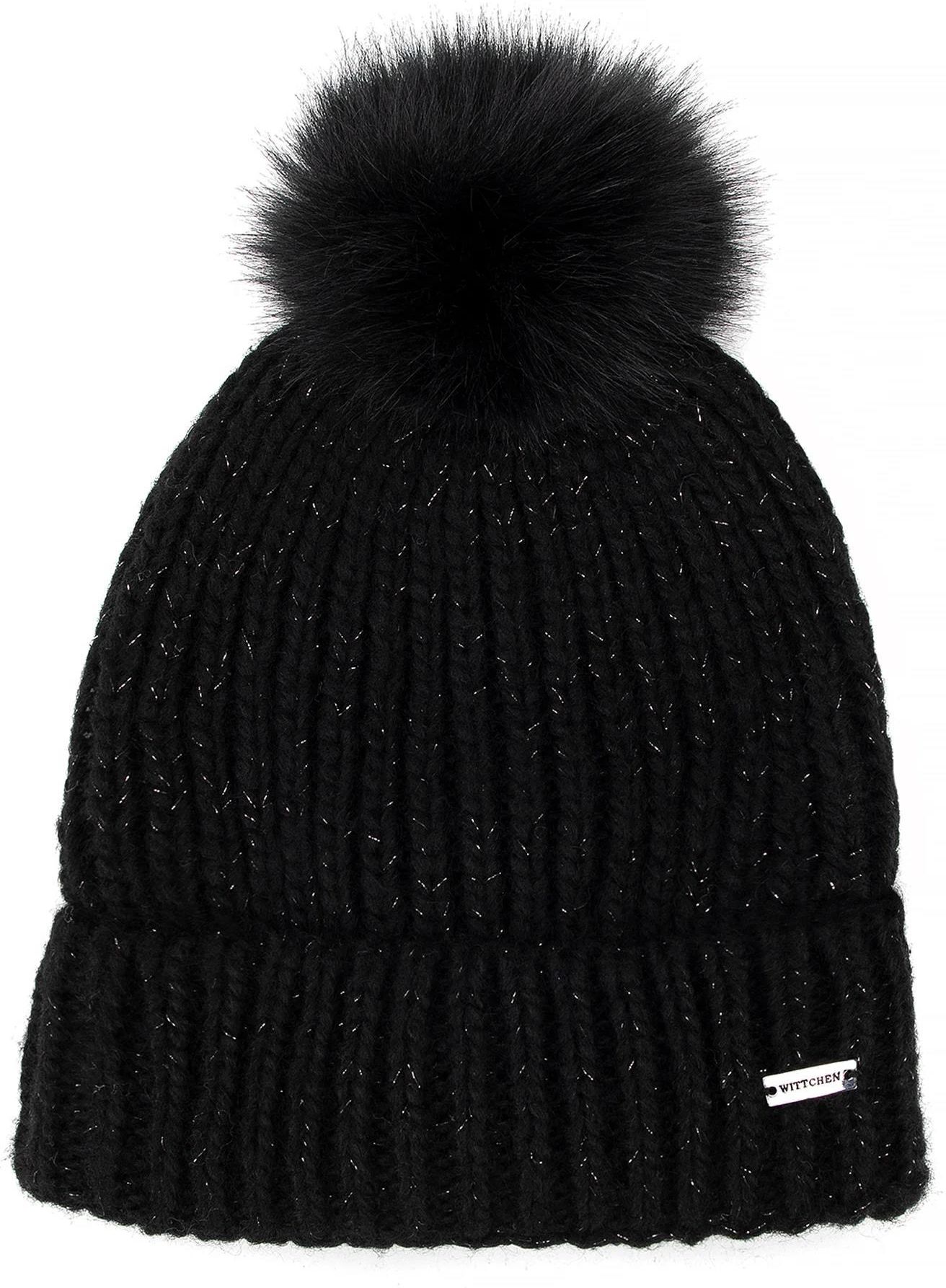 Damska czapka o grubym splocie z pomponem czarna Wyszogród