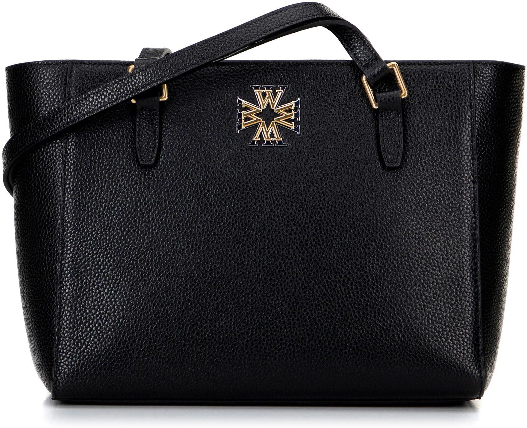 Damska torba na ramię ze skóry czarna ze srebrno-złotym logo Wyszogród