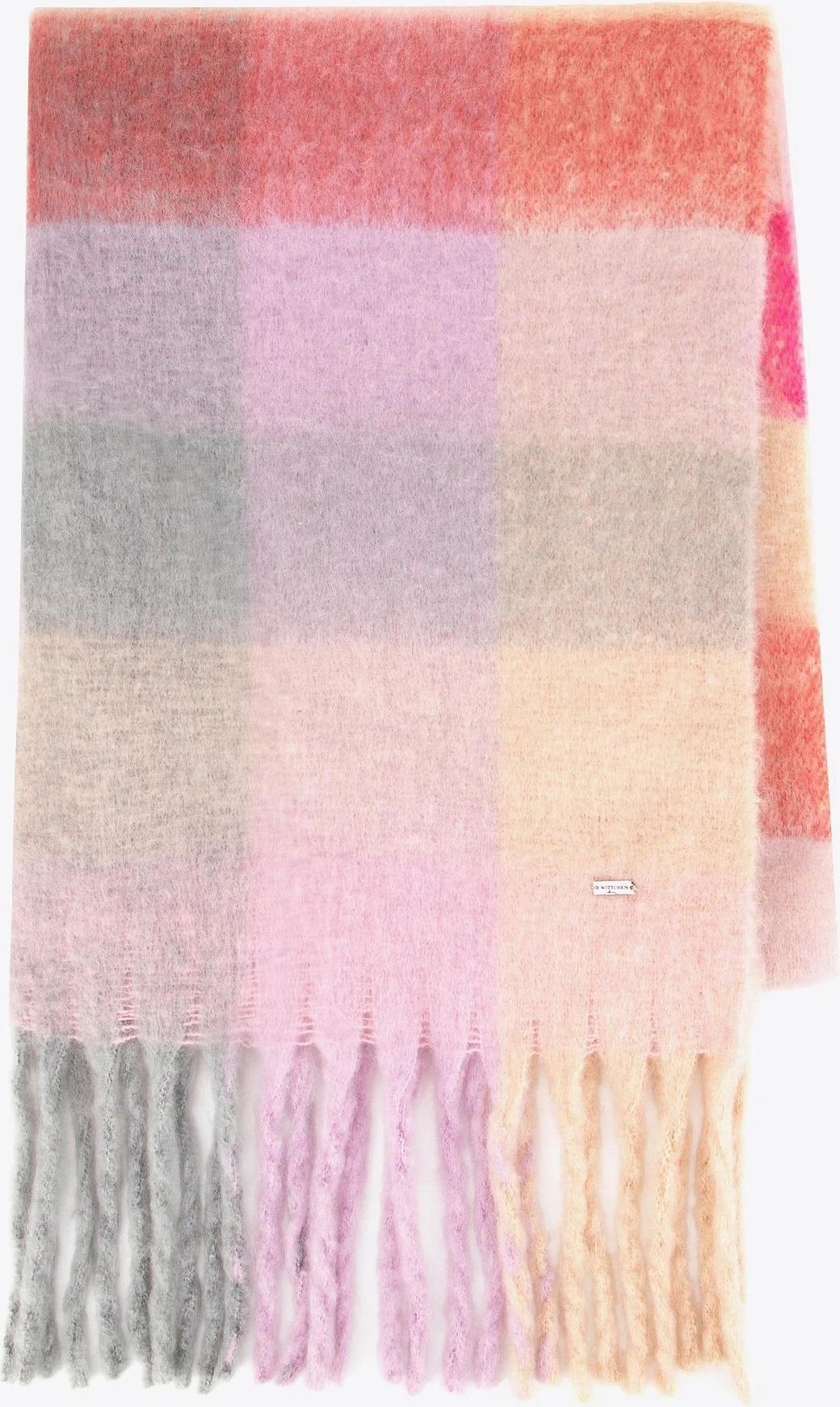 Damski szalik w wielokolorową kratkę różowo - beżowy Wyszogród