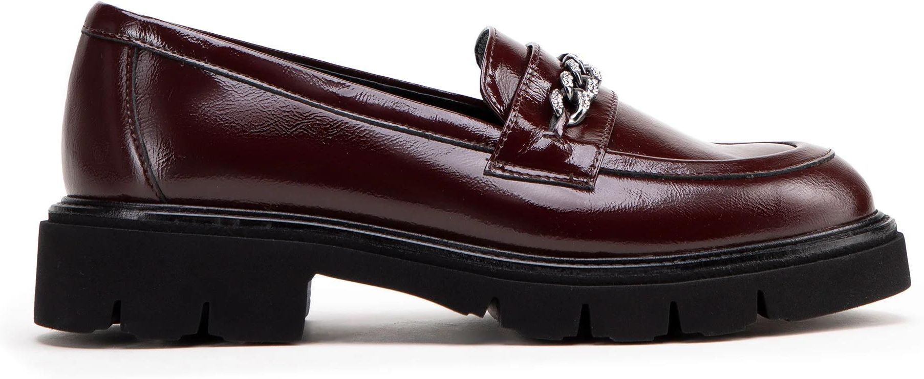 Opinie Damskie mokasyny skórzane z błyszczącym łańcuszkiem bordowe Wyszogród