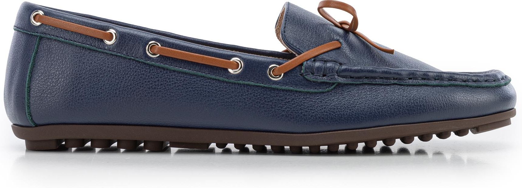 Opinie Damskie mokasyny ze skóry z rzemykiem granatowo - brązowe Wyszogród