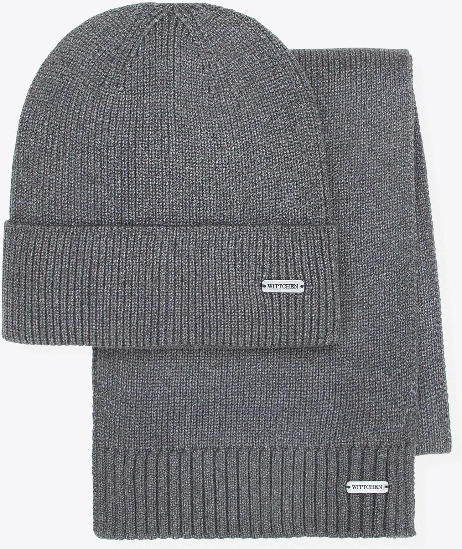 Klasyczny męski komplet: czapka i szalik szary Wyszogród