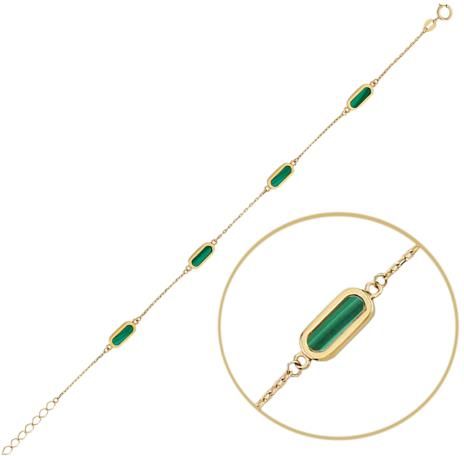 Minet JMG0156GGB17 - Au 585 / 2,05g Elegancka złota bransoletka z zielonym malachitem Wyszogród