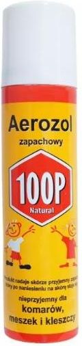 Opis 100P aerozol zapachowy, spray na komary, meszki i kleszcze, 75 ml Właściwości Spray na komary, meszki i kleszcze, 100P Aerozol zapachowy, nadaje skórze przyjemny zapach, który po naniesieniu na skórę działa odstraszająco dla komarów, meszek i kleszczy. W składzie produktu znajduje się D-panthenolu, który działa łagodząco i pielęgnująco na skórę. naturalne składniki eteryczne. odstrasza insekty (komary, kleszcze i meszki). Sposób użycia Spray na komary, meszki i kleszcze, rozpylić na skórę w odległości 20 cm.