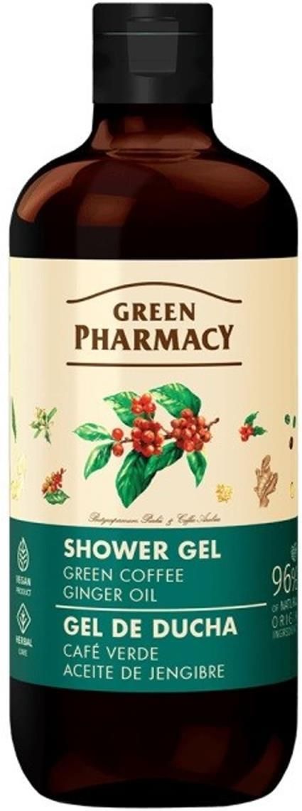 Green Pharmacy to produkt przeznaczony do codziennej pielęgnacji skóry. Dzięki formule wzbogaconej o naturalne ekstrakty i olejki żel doskonale oczyszcza skórę, pozostawiając ją nawilżoną i odświeżoną. Ekstrakt z zielonej kawy tonizuje, napina i przedłuża młodość i elastyczność skóry. Ma działanie antycellulitowe. Olejek imbirowy oczyszcza, eliminuje reakcje zapalne na problematycznej skórze. Normalizuje pracę gruczołów łojowych, pomaga oczyścić i zwęzić pory.