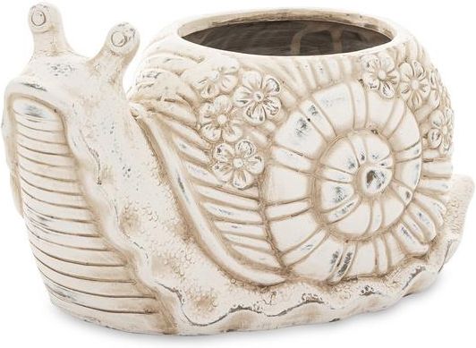 Osłonka Ślimak. Materiał: cement. Rozmiar: 15,5x15x28. Kolor: beżowy. Dekoracja wykonana z ceramiki przypominającej kamień. Powierzchnia celowo postar...