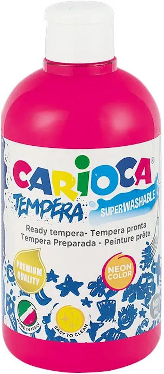 Farba tempera Carioca 500ml neon różowa, RÓŻOWY NEONOWY CARIOCA * farby TEMPERA CARIOCA * tempery to farby wodorozcieńczalne, którymi można malować na wszystkich porowatych powierzchniach: płótnie, papierze, kartonie, tekturze, drewnie, tynku, polistyrenie * wysokiej jakości pigmenty użyte w farbach zapewniają intensywne, wyraziste kolory * po wyschnięciu farby stają się delikatnie matowe a na końcu stają się aksamitne * idealne do nauki i do prac grupowych * łatwo zmywalne * bezzapachowe * szybkoschnące * można je dowolnie mieszać, co pozwala uzyskać nowe kolory i odcienie * możliwość warstwowego malowania i korekt * gotowe do użycia bez dodawania wody * produkowane zgodnie z wymaganiami UNII EUROPEJSKIEJ * przechowywać w temperaturze od 10 do 40°C * butelki wykonane w 30% z materiału pochodzącego z recyklingu * pojemność: 500 ml * kolory: biały, błękitny, brązowy, ciemnoróżowy, czarny, czerwony, fioletowy, granatowy, jasnobrązowy, jasnoniebieski, jasnozielony, łososiowy, różowy neonowy, zielony neonowy, niebieski pastelowy, różowy pastelowy, zielony pastelowy, pomarańczowy, różowy, srebrny, zielony morski, zielony, złoty, żółty, żółty cytrynowy * jednostka sprzedaży 1 sztuka * CARIOCA to uznana włoska marka, oferująca wysokiej jakości artykuły szkolne oraz przedszkolne - dzięki niej można zaopatrzyć swoje dziecko w atestowane produkty, które są potrzebne do codziennej zabawy i nauki