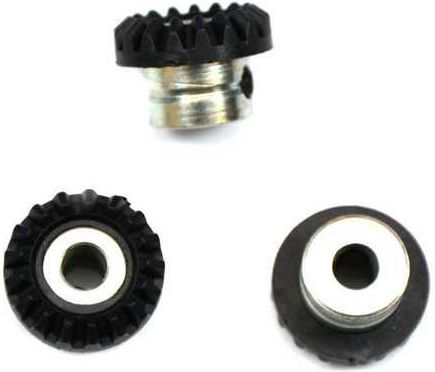 Fabrycznie nowe koło zębate stożkowe z 1 wkrętem przeznaczone do napędu chwytacza obrotowego / wahadłowego wiążącego nitkę podczas szycia maszyną. W naszym sklepie znajdziesz również ofertę kompletu kół zębatych. Wymiary koła zębatego z jednym wkrętem: Średnica otworu wewnętrzna: 6,3 mm Średnica zewnętrzna tulejki: 15,3 mm Średnica wianka zębatego: 23 mm Koło zębate stożkowe z 1 wkrętem: Ilość ząbków: 17 Przekładnia kątowa: 90 stopni Pasuje do modeli maszyn do szycia Łucznik i Singer: 527, 534, 538, 802, 807, 809, 813, 814, 818, 822, 824, 827, 833, 834, 838, 838, 857, 875, 877, 884, 888 oraz wiele innych. Kod producenta: 103363.000 - współpracuje z kołem z dwoma wkrętami 103361.000