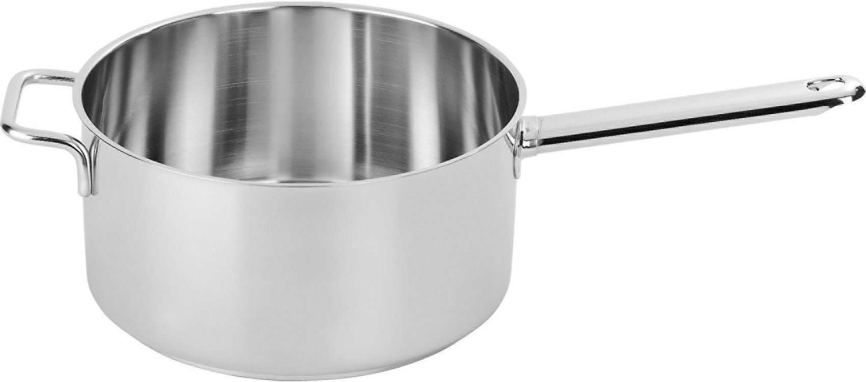 Szybkie podgrzanie zupy, przygotowanie pysznego sosu, podduszenie warzyw na masełku – z tym rondelkiem wszystkie mniejsze czynności kuchenne okażą się dziecinnie łatwe. To doskonałe naczynie z linii Apollo 7 Demeyere dostępne jest w aż 5 rozmiarach, niestraszne mu więc nawet duże ilości porcji. Purystyczny design, piękna, srebrno-biała barwa stali szlachetnej oraz specjalna powłoka Silvinox® sprawią, że rondel ucieszy jednak nie tylko użytecznością, ale wyglądem przez bardzo długie lata. To charakterystyczne dla całej serii wykończenie sprawia, że unikną Państwo przebarwień oraz zatrzymania resztek jedzenia, a tym samym czyni garnek łatwym w codziennej pielęgnacji i czyszczeniu. Jedną z głównych zalet rondla jest niezwykłe, siedmiowarstwowe dno wykonane z nierdzewnej stali szlachetnej, aluminium i innych stopów gwarantujących szybkie i równomierne rozprowadzanie ciepła po jego całej powierzchni. Szczególnie dobrze naczynie sprawdza się na płytach indukcyjnych, zwiększając ich możliwości nawet o 30 procent, ale oczywiście można używać go na wszystkich innych rodzajach kuchenek. Te wszystkie zalety sprawią, że z rondelkiem Demeyere Apollo 7 Państwa kuchnia wyposażona zostanie w najprawdziwszego wielozadaniowca. CECHY SZCZEGÓLNE Szlachetna stal nierdzewna 18/10 z wykończeniem Silvinox®: higieniczna i łatwa w pielęgnacji InductoBase® – 7-warstwowe dno z aluminium dla optymalnych rezultatów gotowania Wygodne, przyspawane uchwyty ze stali nierdzewnej – stabilne, bezpieczne i higieniczne Nadaje się do piekarnika i wszystkich rodzajów kuchenek, w tym indukcyjnych WYMIARY Średnica: 14 cm 16 cm 18 cm 20 cm 22 cm Średnica dna: 12 cm 14 cm 16 cm 18 cm 20 cm Wysokość: 8.3 cm 8.8 cm 10.1 cm 11.1 cm 12.1 cm Pojemność: 1 ltr 1.5 ltr 2.2 ltr 3 ltr 4 ltr Długość: 30.7 cm 32.7 cm 36.7 cm 38.7 cm 44.3 cm Szerokość: 15 cm 17.1 cm 19.1 cm 21.1 cm 23.1 cm Masa: 0.58 kg 0.71 kg 0.89 kg 1.1 kg 1.54 kg