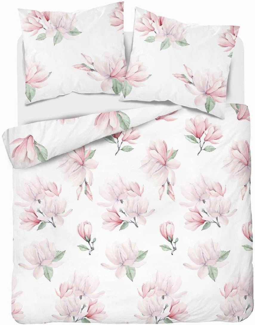 Detexpol Pościel Z Mikrofibry 220X200 + 2X 70X80Cm Biała Różowa Kwiaty (POMI5034A220ROT) Ząbki