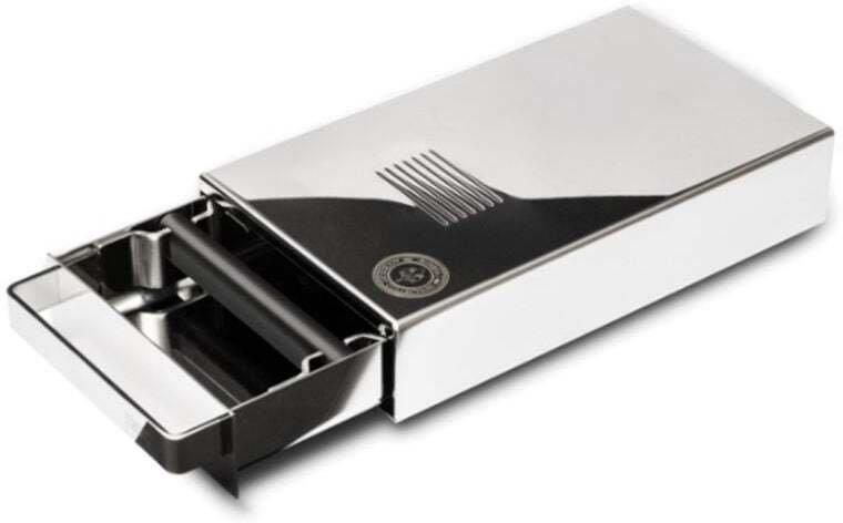 Dzięki 100% stalowej obudowie oraz wyjątkowo kompaktowym wymiarom całkowitym (szerokość: 135 mm, głębokość: 265 mm, wysokość: 58 mm), ta szuflada „Mignon” z pewnością będzie doskonałym uzupełnieniem Twojego młynka do kawy „Eureka Mignon”. KOMPAKTOWA JAK „MIGNON” Zaprojektowana, aby pasowała pod młynek do kawy „Eureka Mignon”. WYTRZYMAŁY UCHWYT DO SZYBKIEGO I ŁATWEGO UŻYTKOWANIA Stalowy uchwyt zapewnia użytkowanie przez całe życie. BELKA ODBIJAKA REDUKUJĄCA HAŁAS Uderzanie portafilterem nigdy nie było tak przyjemne. Materiał belki został zaprojektowany tak, aby pochłaniać wstrząsy i minimalizować hałas. PRECYZYJNE I SZYBKIE CZYSZCZENIE Łatwy w obsłudze system wysuwania szuflady. Wyjmowana belka.